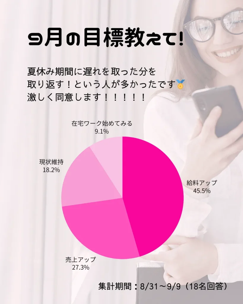 9月に実施したアンケートでは、「今月の目標は?」というテーマで回答を募りました。