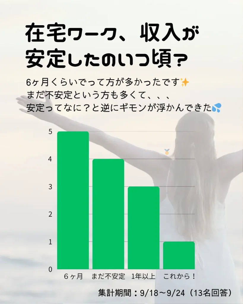 「在宅ワークで収入が安定したのはいつ頃ですか?」という質問では、次のような結果となりました。