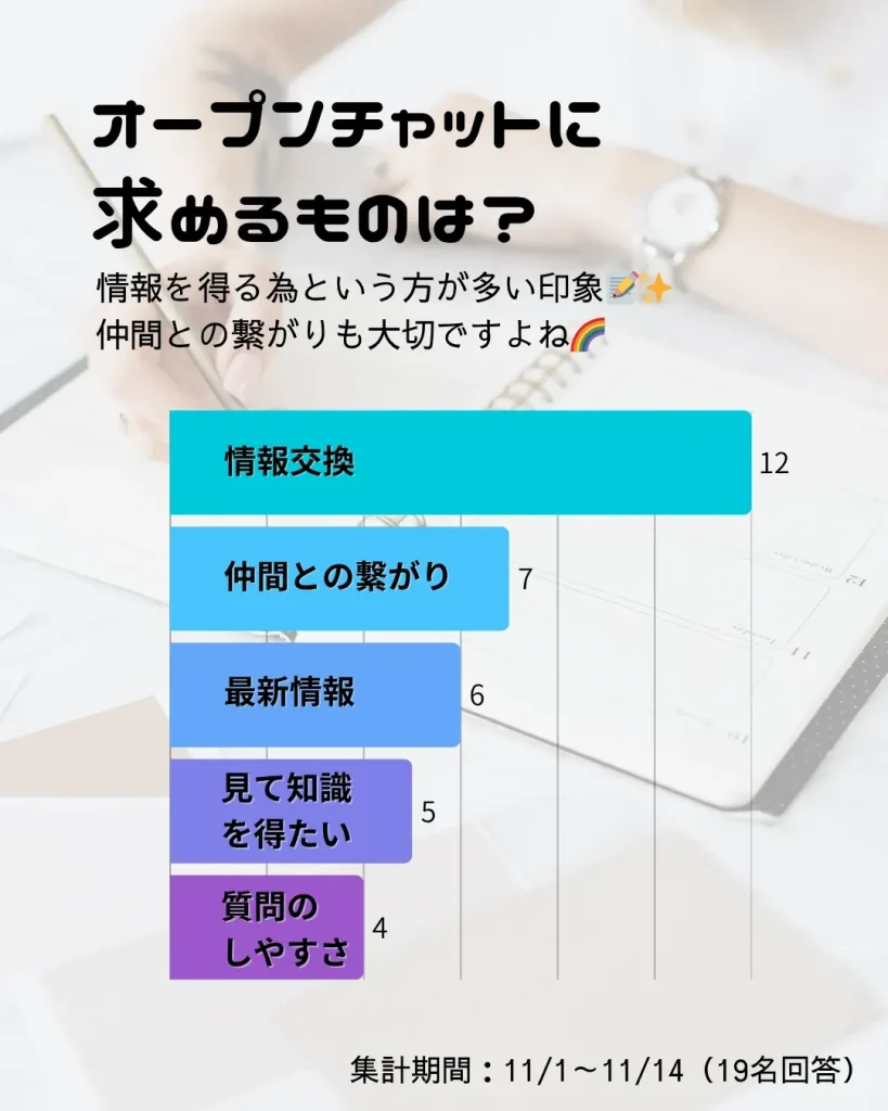私たちのオープンチャットで11月に行ったアンケートをまとめました。