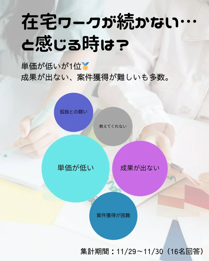 3位の「案件獲得が難しい」は、在宅ワーカーほぼ全員が通る道。